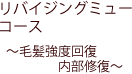 ダメージ毛にヘマチン・疎水性ケラチン・PPTコラーゲン・セラミド・スクワラン等各種アミノ酸系をふんだんに、超音波タイプの補修機により内部浸透をし、 表面をガード。摩擦などによるダメージ予防効果で感触良化します。